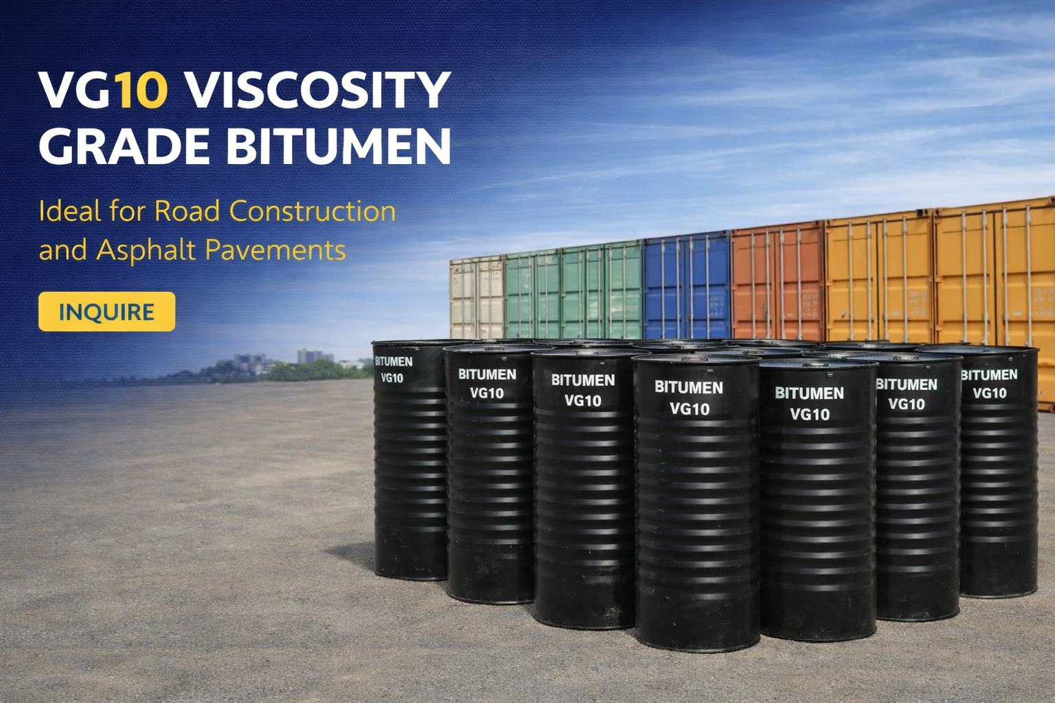 VG 10 bitumen is a reliable and versatile product sourced from the Middle East, offering excellent workability, adhesion, and flexibility in asphalt applications.